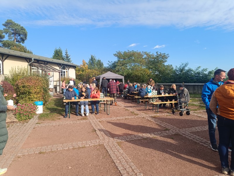 Das Wetter meinte es gut mit uns und so genossen die Besucher ein vielseitiges Programm: Dampfende Bratwürste frisch vom Rost, frisch gezapftes Thüringer Bier und hausgemachte Blechkuchen sowie Tortenspezialitäten sorgten für das leibliche Wohl. Die Musiker von „Die Zwei“ begleiteten den Tag mit stimmungsvoller Musik, die zur ausgelassenen Atmosphäre beitrug.